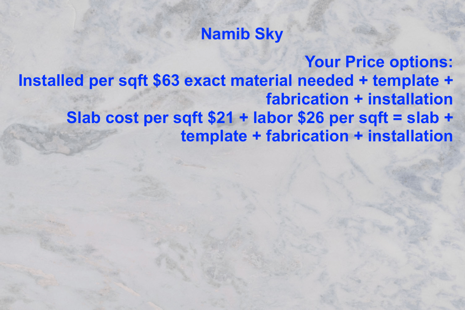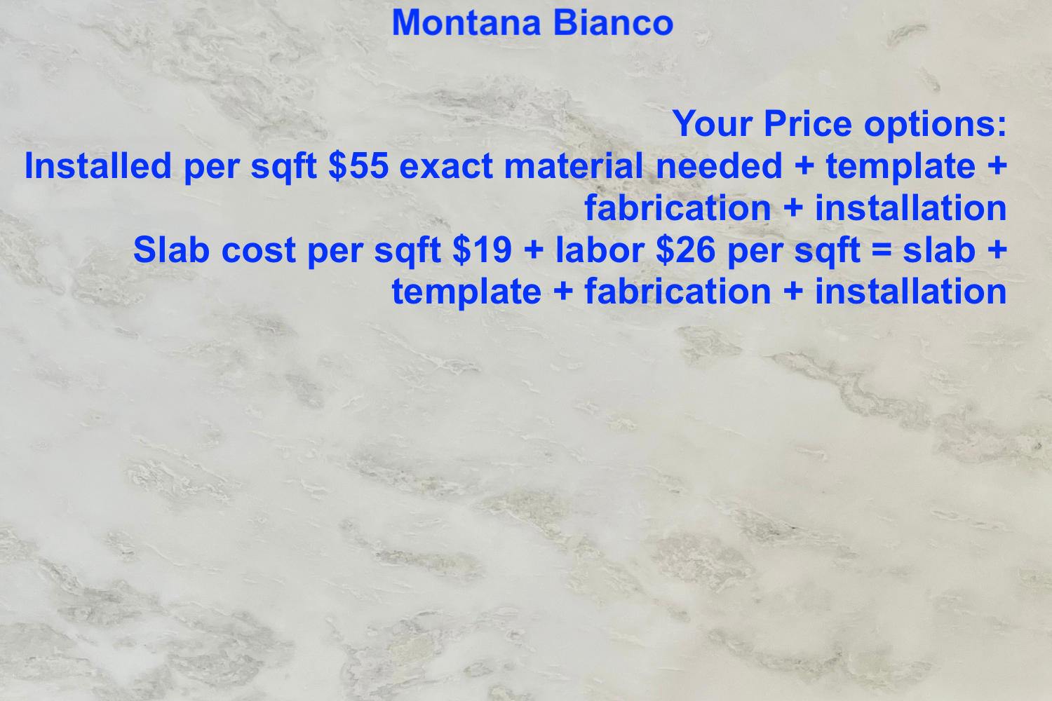 - Template Fabrication & Installation: $26 / sq ft